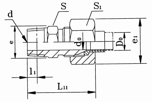 管子外徑D0為10mm的A型擴口式錐螺紋直通管接頭: