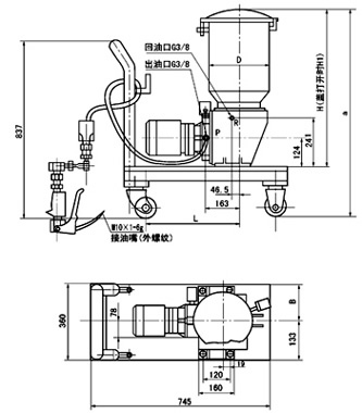 (1)潤(rùn)滑泵的外形尺寸 (2)帶小車(chē)潤(rùn)滑裝置外形尺寸 |