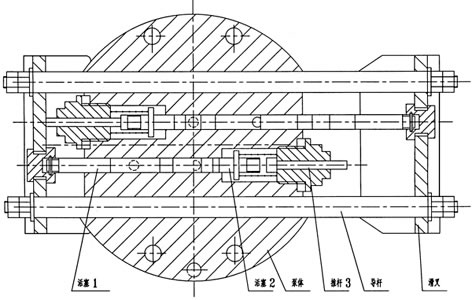 泵體內(nèi)二組活塞,每組活塞由1個(gè)工作塞和2個(gè)控制活塞組成,當(dāng)一組活塞中的工作活塞完成吸油過(guò)程時(shí),另一組活塞中的工作活塞則把潤(rùn)滑脂壓向出油口。如下圖所示,當(dāng)滑叉向左運(yùn)動(dòng)時(shí),上組活塞完成吸油,下組活塞完成壓油,開(kāi)始新的工作循環(huán)。這時(shí)下組活塞1、2向左運(yùn)動(dòng),活塞2在彈簧力作用下到達(dá)極限位置關(guān)閉出口,而活塞1繼續(xù)向左運(yùn)動(dòng),這時(shí)活塞2和1之間形成真空,其真空度隨活塞1的左移不斷增大,滑叉運(yùn)動(dòng)到極限位置活塞1打開(kāi)吸油口,潤(rùn)滑脂從吸油口吸入,如彈簧力不足,沒(méi)將活塞2推到極限位置,此時(shí)推桿3會(huì)在滑叉的推動(dòng)下強(qiáng)制地把活塞2壓到極限位置,同時(shí)上組活塞1、2、3向左運(yùn)動(dòng),活塞1先關(guān)閉吸油口,被吸入的潤(rùn)滑脂在活塞1的推動(dòng)下向左移動(dòng),當(dāng)活塞2把出油口打開(kāi)時(shí),活塞2和推桿3 的運(yùn)動(dòng)也就停止,活塞1繼續(xù)左移,把潤(rùn)滑脂從出油口壓出,活塞1、2接觸滑叉也已運(yùn)動(dòng)到極限位置完成半個(gè)循環(huán)的工作,如此周而復(fù)始地循環(huán),二組活塞交替地將潤(rùn)滑油脂從出油口壓送出來(lái),壓出的潤(rùn)滑脂經(jīng)泵裝置連接法蘭上的過(guò)濾器過(guò)濾后向系統(tǒng)供送。
