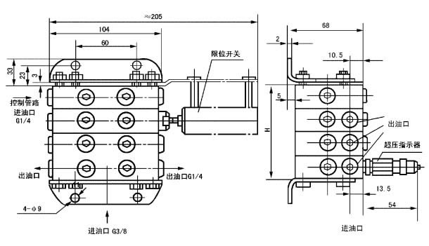 ② JPQ4型組合時(shí)需有一片控制片,此片無(wú)給油口。
